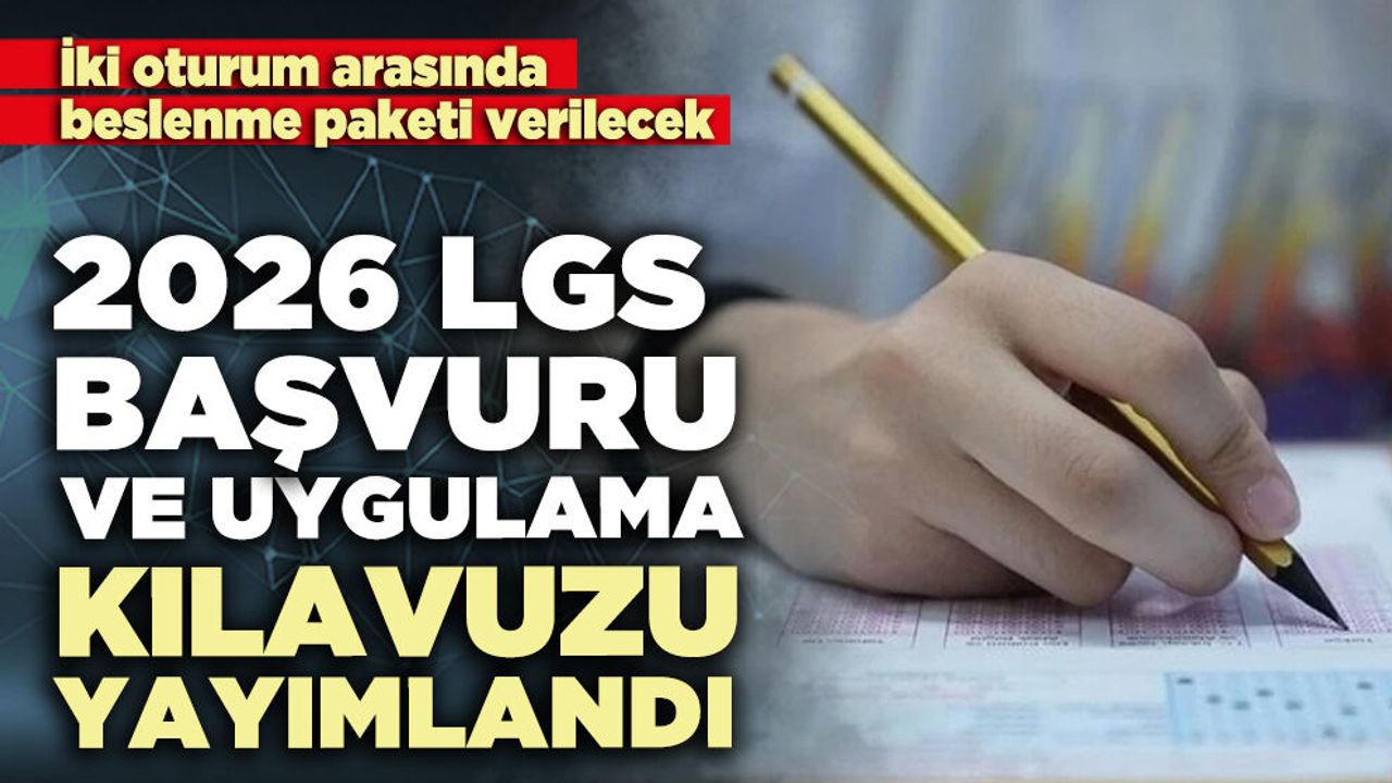 Milli Eğitim Bakanlığınca bu yıl 14 Haziran 2026'da düzenlenecek Liselere Geçiş Sistemi (LGS) kapsamındaki merkezî sınavın başvuru ve uygulama kılavuzu yayımlandı. Kılavuza göre başvurular, 23 Mart-10 Nisan 2026 tarihleri arasında elektronik ortamda yapılabilecek. Sınav giriş belgeleri 3 Haziran 2026'da ilan edilecek, sınav sonuçları ise 10 Temmuz 2026'da açıklanacak. İki oturum arasında isteyen öğrencilere beslenme paketi verilecek.