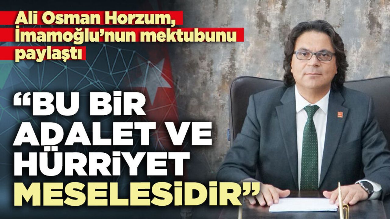 Ali Osman Horzum, Silivri Zindanında milletin refahı için, hukuk, demokrasi ve adalet için mücadele eden, Cumhurbaşkanı Adayımız Ekrem İmamoğlu'nun mektubu var diyerek İmamoğlu’nun mektubunu paylaştı: