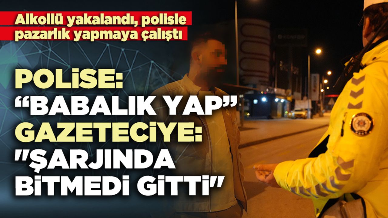 Alkolmetreyi üfledikten sonra aracından inen sürücünün polis ekipleriyle pazarlık yapmaya çalıştı. Sürücünün, "Sen memursun, devlet adamısın lütfen bir abilik bir babalık yap. Bırak beni" ve "Ehliyetli birisini getireyim o sürsün ama ceza yazmayın" dedi.