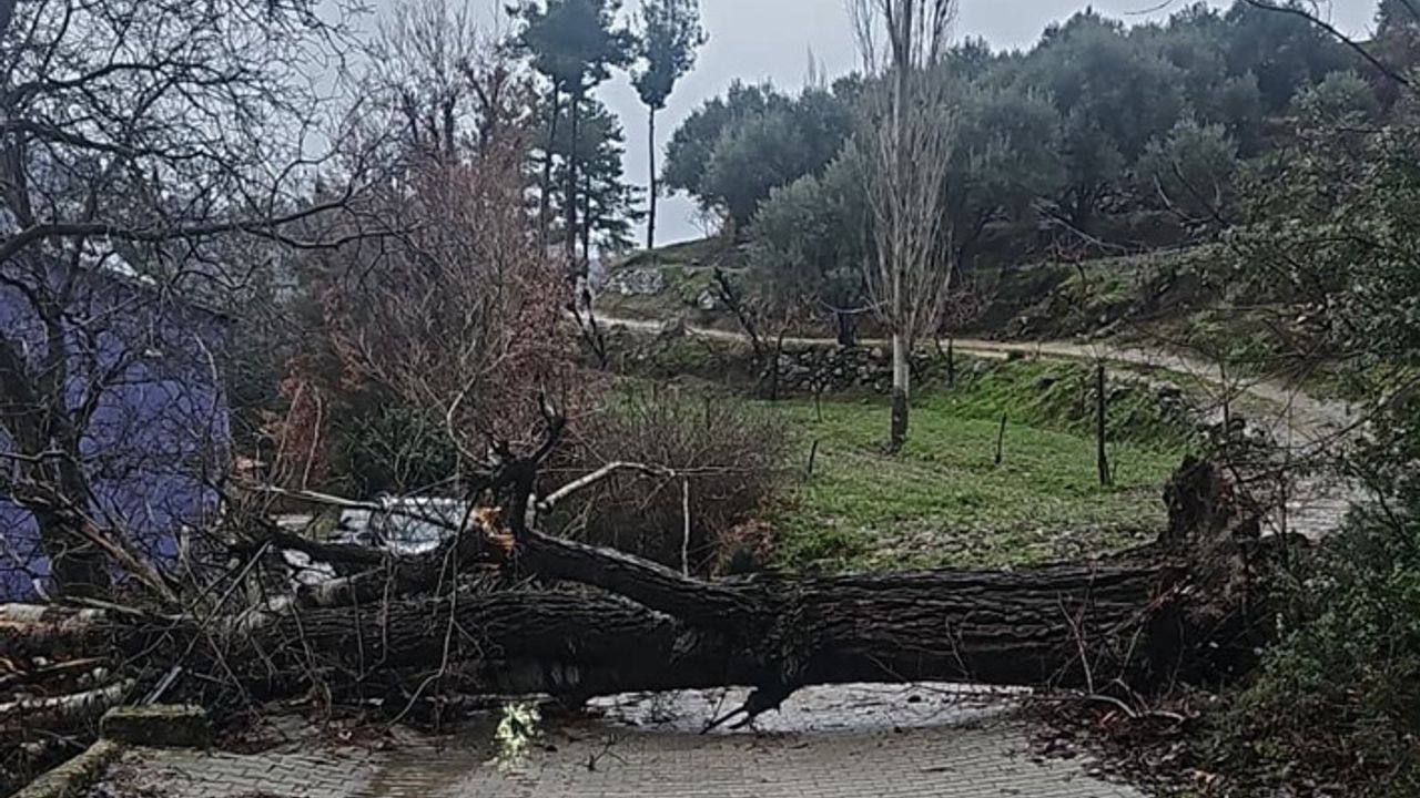 Denizli’nin Buldan ilçesinde hafta sonu yağışla birlikte etkili olan şiddetli fırtına, günlük hayatı olumsuz yönde etkiledi. İlçeye bağlı Çaybaşı Mahallesi Dr. Behçet Uz Caddesi 2. Çıkmazda bulunan asırlık kavak ağacı, şiddetli fırtınaya daha fazla dayanamayarak devrildi. Devredilen asırlık ağacın 1 metre çaplı dev gövdesi, yolu kapattı. Bölgeye ulaşım yapılan yolu kapatan asırlık çınar ağacının gövdesi, parçalanarak bölgeden kaldırıldı.
