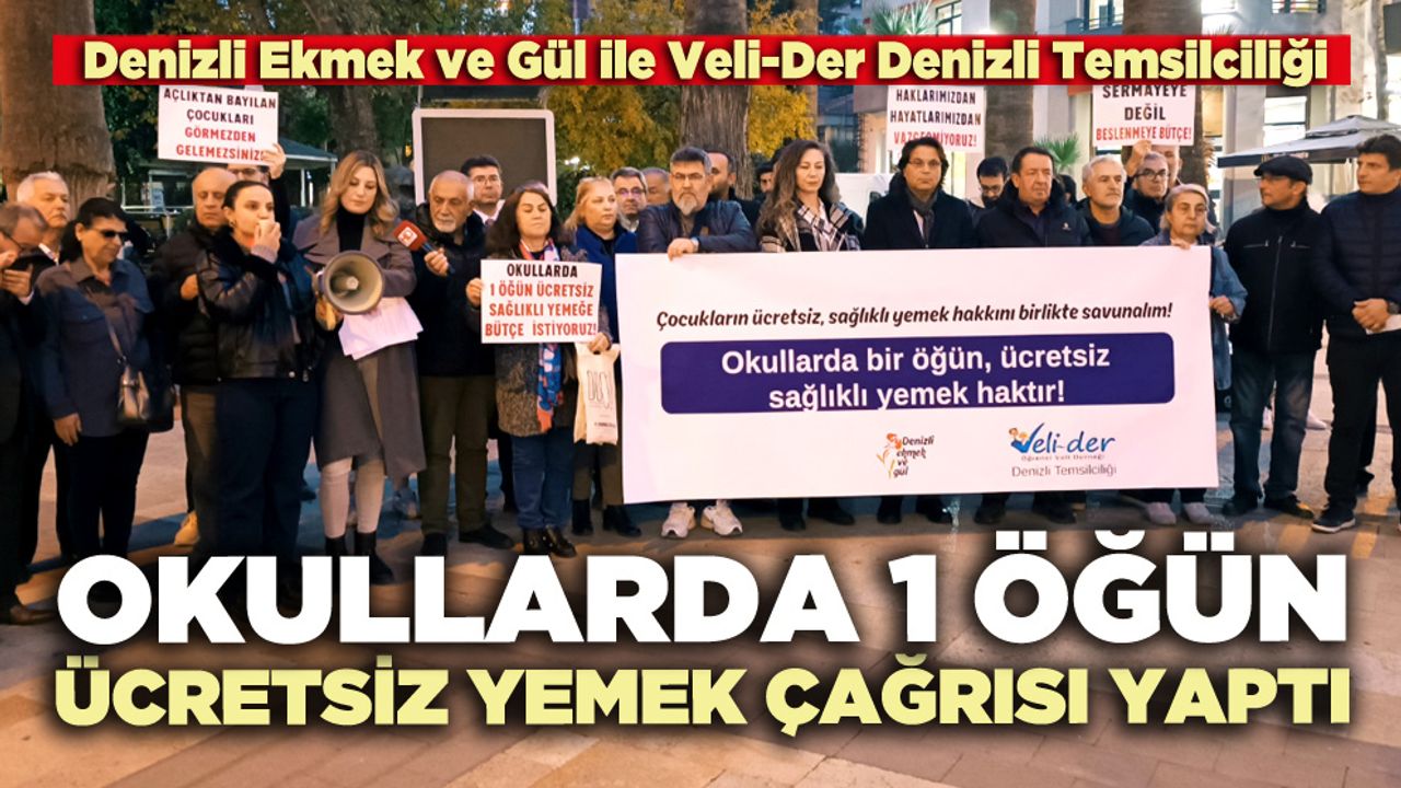 Denizli Ekmek ve Gül ile Veli-Der Denizli Temsilciliği çağrısı ile Candoğan Parkında okullarda 1 öğün ücretsiz sağlıklı yemek için basın açıklaması yapıldı. Açıklamaya KESK ve Birleşik Kamu İş bileşeni sendikalar, Hacı Bektaş Veli Anadolu Kültür Vakfı Denizli Şubesi, Altı Nokta Körler Derneği Denizli Şubesi, Kadın Dayanışma Komiteleri, Tüm Emeklilerin Sendikası, Çağdaş Yaşamı Destekleme Derneği Denizli Şubesi ve siyasi parti temsilcileri de katıldı.