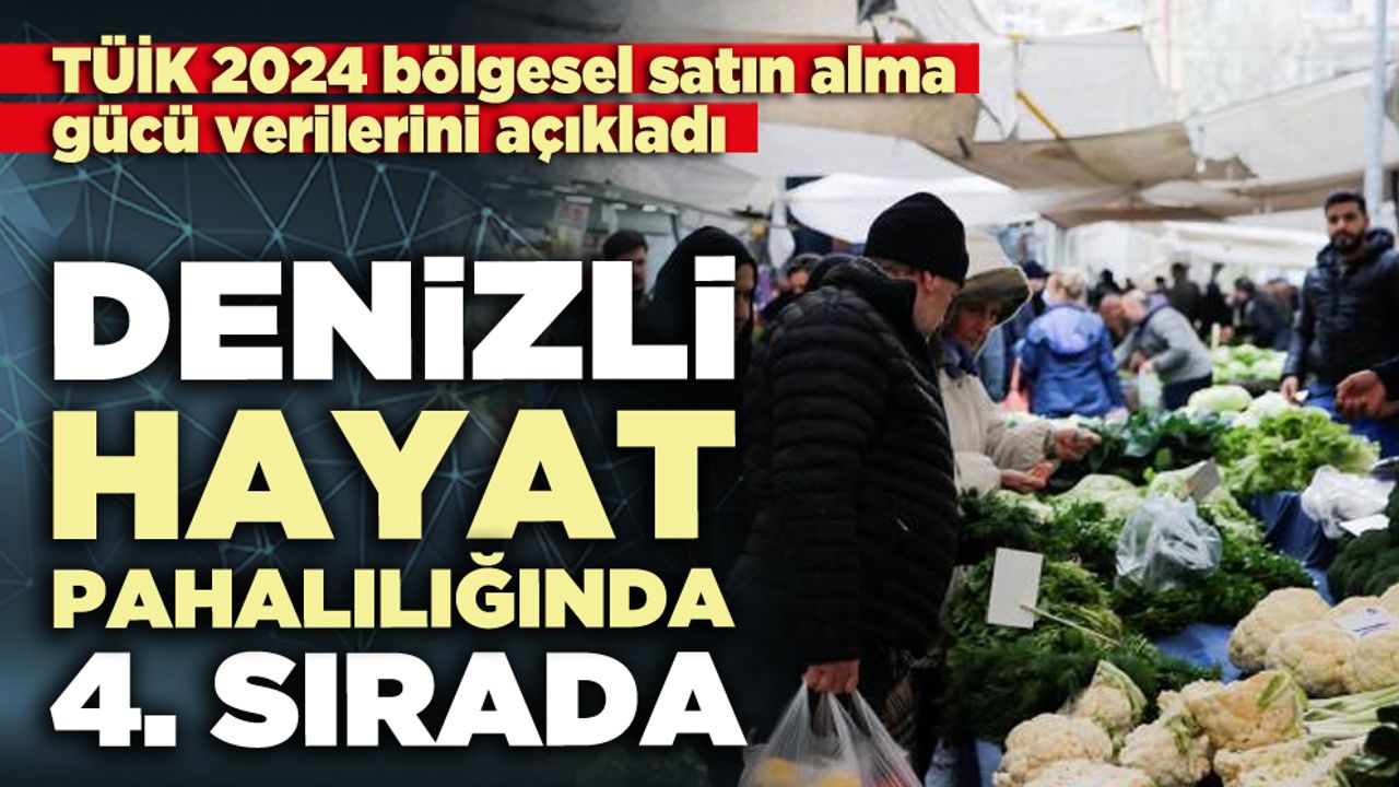 Türkiye'nin 2024 yılı sonuçlarına göre fiyat düzeyi endeksi en yüksek bölgesi 112,6 ile TR10 (İstanbul), en düşük bölgesi ise 91,5 ile TRC3 (Mardin, Batman, Şırnak, Siirt) oldu. Bu endeks değerleri, TR10'un (İstanbul) Türkiye ortalamasına göre yüzde 12,6 pahalı, TRC3'ün (Mardin, Batman, Şırnak, Siirt) ise yüzde 8,5 daha ucuz olduğunu gösterdi. Denizli (TR32) 106.0 ile dördüncü sıraya yerleşti.
