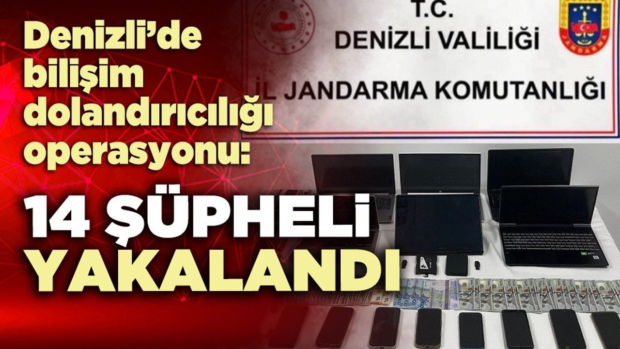 Denizli İl Jandarma Komutanlığı tarafından “nitelikli dolandırıcılık suçunu bilişim sistemlerini kullanarak işlemek” suçundan yürütülen soruşturma kapsamında 9 farklı ilde eş zamanlı operasyon gerçekleştirildi. Operasyon neticesinde 14 şüpheli şahıs yakalandı. Yapılan aramalarda 18 adet cep telefonu, 19 adet sim kart, 6 adet laptop, 4 adet USB bellek, 1 adet sahte kimlik, 1 adet tablet, 1 adet harici hard disk, 3.800 dolar ve 440 manat tutarında para ele geçirildi.