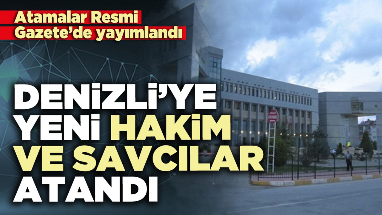 Resmi Gazete’de yer alan listeye göre, Denizli Bölge Adliye Mahkemesi üyesi Duygu Dilek, Denizli Hâkimliği’ne atandı. Samsun Bölge Adliye Mahkemesi üyesi Zafer Demirtaş, Denizli Bölge Adliye Mahkemesi Üyeliği’ne getirildi. Samsun Bölge Adliye Mahkemesi üyesi Esra Demirtaş da aynı görev için Denizli’ye atandı. Çorlu Cumhuriyet Savcısı Ramazan Özmen, Denizli Cumhuriyet Savcılığı’na; Akşehir Cumhuriyet Savcısı Umut Sarıkahya ise Denizli Cumhuriyet Savcılığı’na tayin edildi.