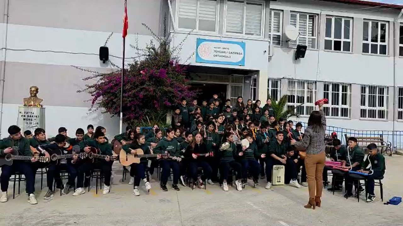 Denizli Büyükşehir Belediyesi, Türkiye’yi derinden etkileyen Kahramanmaraş merkezli depremlerin ikinci yıl dönümünde Hatay’a elini uzatmış; okulda bulunan müzik sınıfının enstrüman ihtiyacı, Başkan Bülent Nuri Çavuşoğlu’nun talimatıyla temin edilmişti. Afet İşleri ve Risk Yönetimi Dairesi Başkanı Ufuk Tarakçıoğlu, İtfaiye Dairesi Başkanı Murat Başlı, şube müdürleri ve personelden oluşan heyet, geçtiğimiz yıl öğrencileri ziyaret ederek müzik aletlerini öğrencilere ulaştırmıştı. Müziğin birleştirici ve iyileştirici gücüyle depremin hafızalarında açtığı derin izleri bir nebze de olsa geride bırakan öğrenciler, çaldıkları notalarla yarınlar için umut oldu. Kalpten gelen melodilerle hayata dört elle sarılan öğrenciler, depremin üçüncü yıl dönümünde enstrümanlarıyla birlikte müzik sınıfında çektikleri video ile teşekkür mesajı gönderdi.