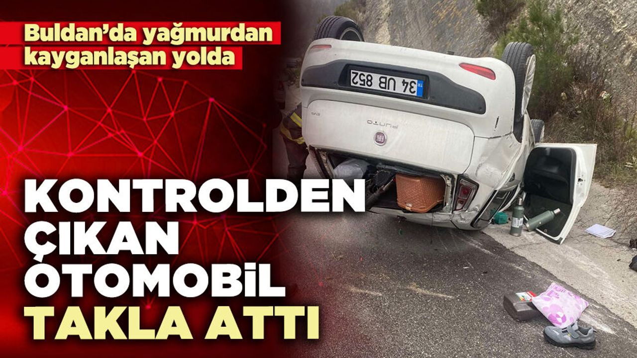 Kaza, Buldan ilçesi Manisa-Denizli Karayolu üzerinde meydana geldi. Edinilen bilgilere göre, yağmur nedeniyle kayganlaşan yolda sürücüsü henüz öğrenilemeyen 34 UB 852 plakalı otomobil kontrolden çıktı. Savrulan otomobil takla atarak yoldan çıktı. Çevredeki vatandaşların ihbarı üzerine bölgeye sağlık, itfaiye ve polis ekipleri sevk edildi. Takla atan otomobil sürücüsü kazayı yara almadan atlatırken, araçta maddi hasar meydana geldi.