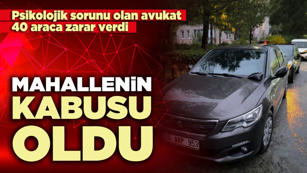 Olay, Cumartesi günü akşam saatlerinde Denizli’nin Merkezefendi ilçesinde bulunan Umutkent 2 Sitesinde meydana geldi. Edinilen bilgilere göre; sitedeki bir apartman dairesince ailesiyle birlikte ikamet eden ve psikolojik sorunları olduğu iddia edilen genç avukat F.K., site içerisinde terör estirdi. Eline aldığı sopa ile site içesindeki otoparkta park halindeki yaklaşık 40 araçlara saldıran F.K., araçlara aynaları ve camlarını kırarak zarar verdi.