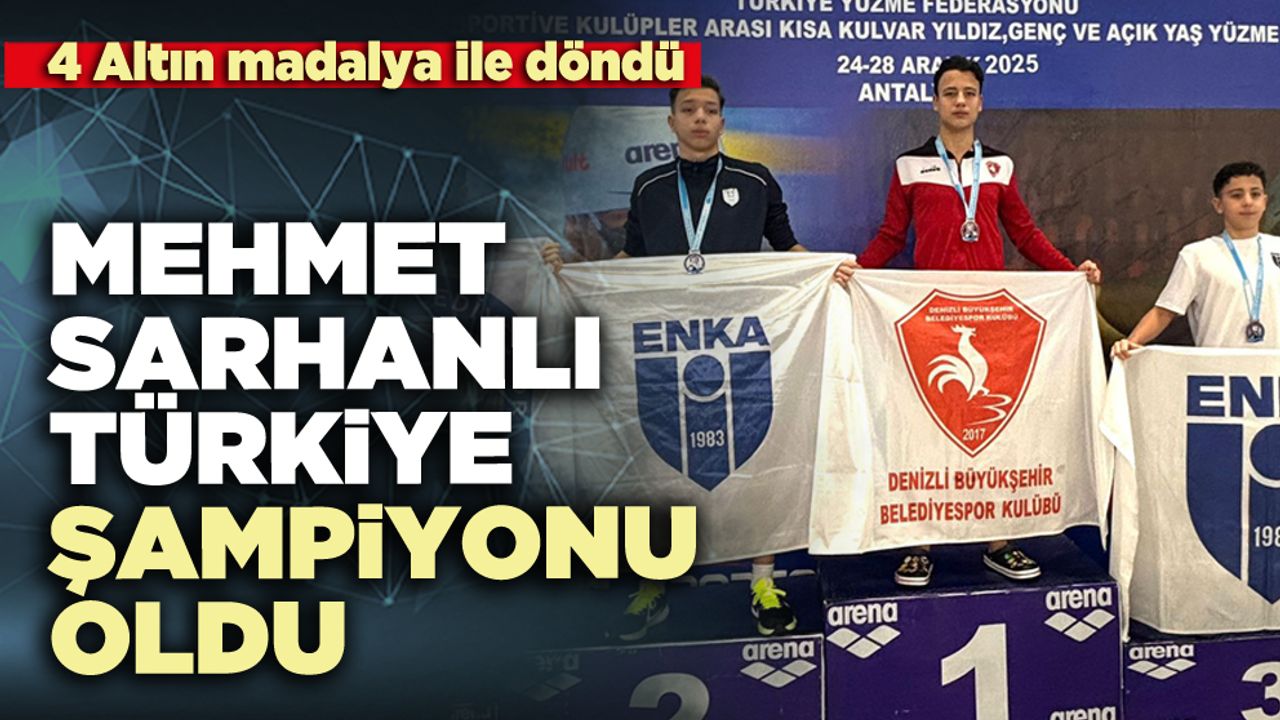 Türkiye Yüzme Federasyonu tarafından Antalya’da gerçekleştirilen Türkiye Yıldız, Genç ve Açık Yaş Kulüpler Arası Yüzme Şampiyonası'na Denizli damgası vuruldu. Denizli Büyükşehir Belediyespor’un genç yeteneği Mehmet Sarhanlı, sergilediği üstün performansla 4 ayrı kategoride Türkiye Şampiyonu olarak kürsünün zirvesine çıktı.