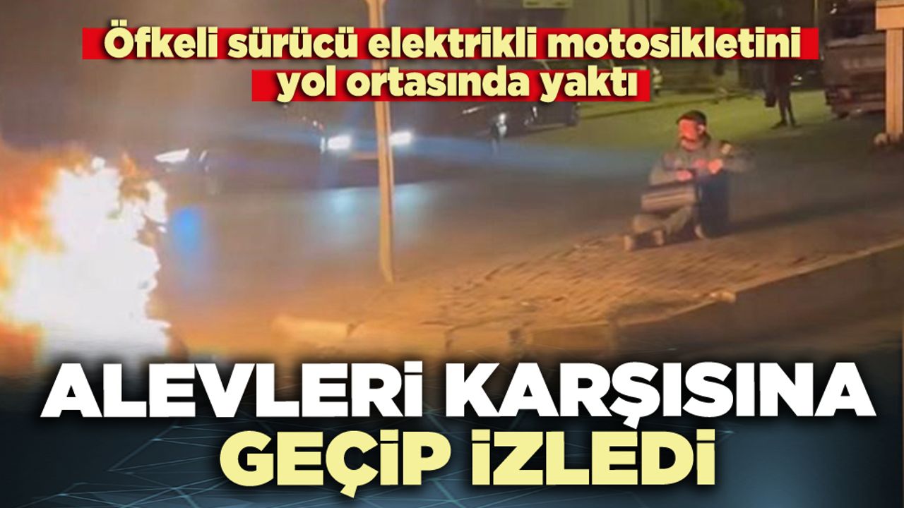 Olay, Pamukkale ilçesi Cumhuriyet Mahallesi'nde meydana geldi. Elektrikli motosikleti arıza yapan sürücü, dakikalarca uğraşmasına rağmen aracı çalıştıramadı. Öfkeye kapılan sürücü, yakındaki bir akaryakıt istasyonundan benzin alarak motosikletinin üzerine döktü ve ateşe verdi. Saniyeler içinde alevler içinde kalan motosikletin karşısına geçen sürücü, yere oturarak yangını izlemeye başladı.