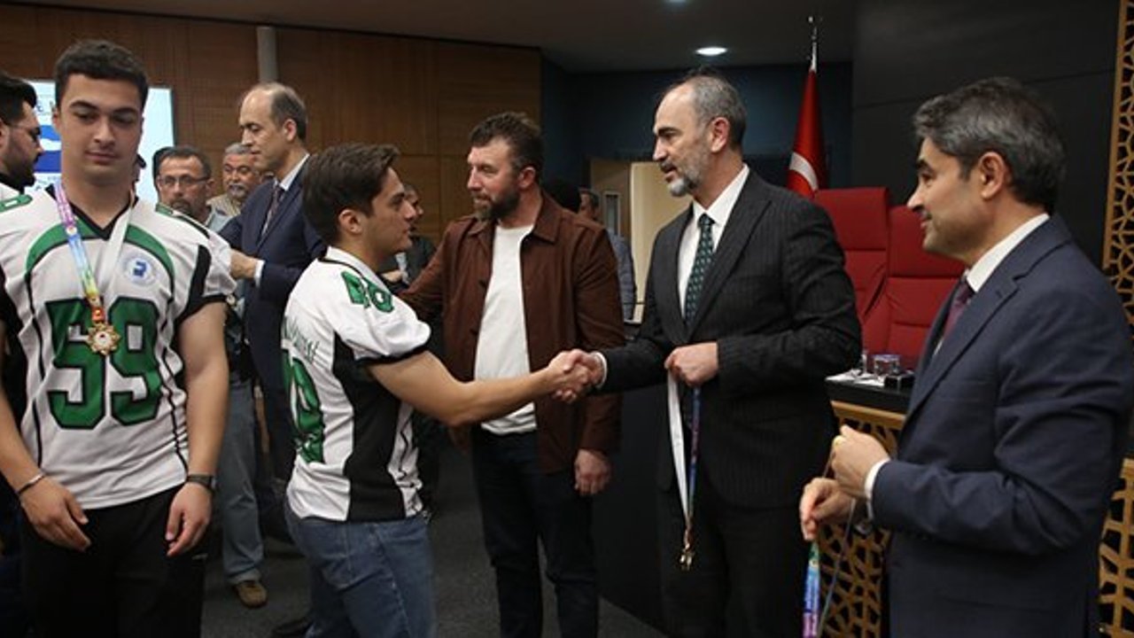 Şampiyonluk kupası ve madalya takdim töreni, Pamukkale Üniversitesi Rektörlük Senato Odası’nda gerçekleştirildi. Törene Rektör Yardımcıları Prof. Dr. İbrahim Türkçüer ve Prof. Dr. Mehmet İnel, Genel Sekreter Fatih Işık ile Sağlık Kültür ve Spor (SKS) Daire Başkanı Sinan Baş katıldı.
