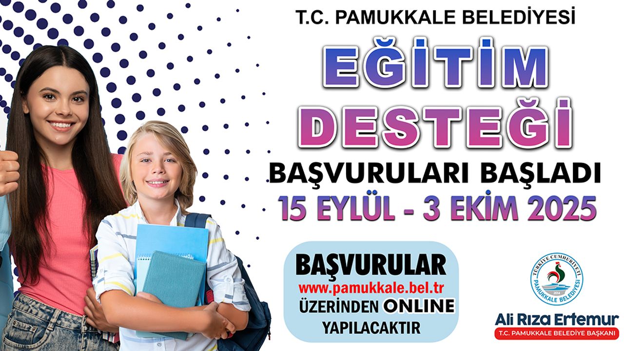 Pamukkale Belediyesi tarafından yapılan açıklamada, eğitim desteğinden faydalanmak isteyen öğrencilerin başvurularını en geç 3 Ekim 2025 Cuma günü saat 23.59’a kadar tamamlamaları gerektiği belirtildi. Başvurular, belediyenin resmi internet sitesi www.pamukkale.bel.tr üzerinden online olarak yapılacak. Adayların gerekli belgeleri eksiksiz şekilde sisteme yüklemeleri önem taşıyor.