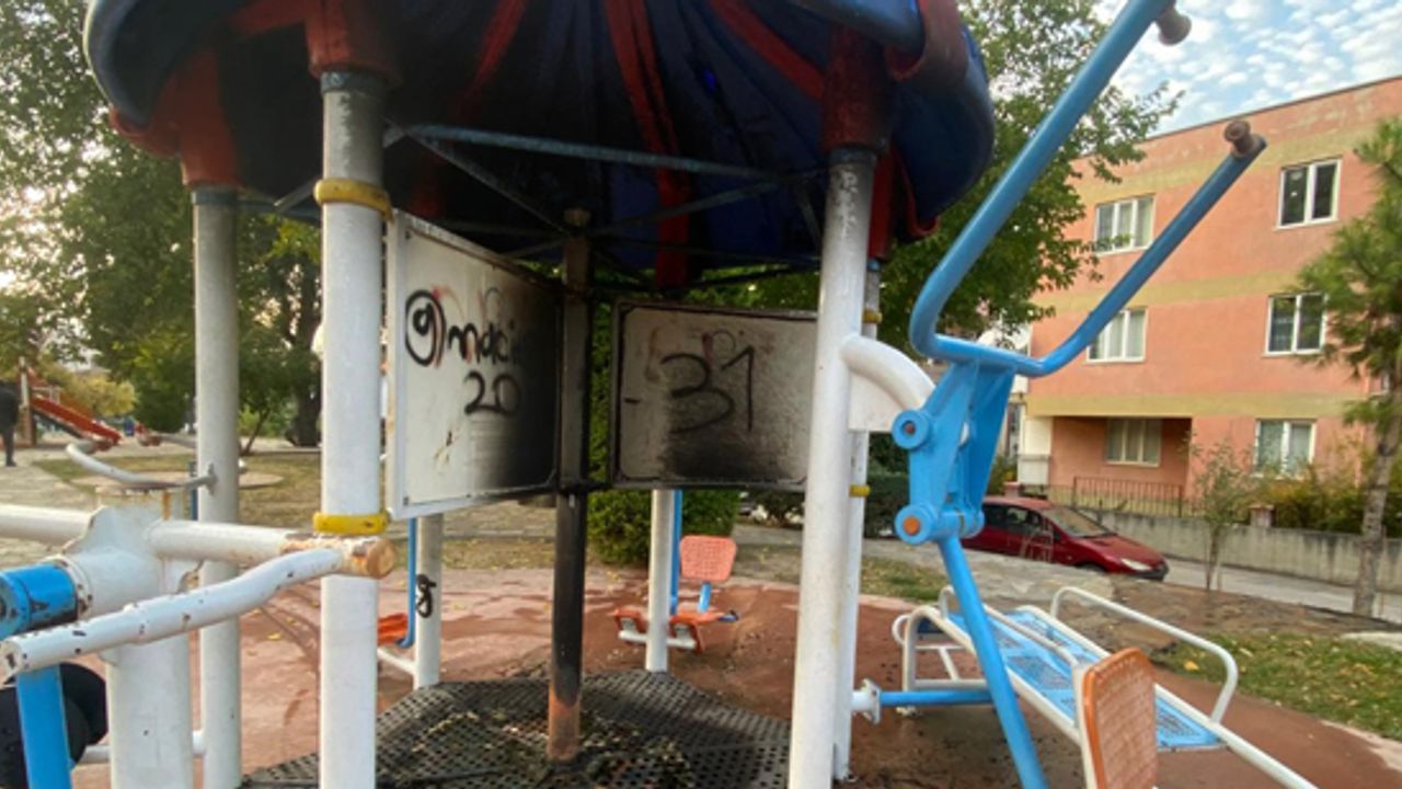Parkta oynaması için çocuklarını getiren ebeveynler oyuncağın yanması üzerine çocukların zarar görmesinden korkarak, milli servete zarar veriliyor diye tepki gösterdi.