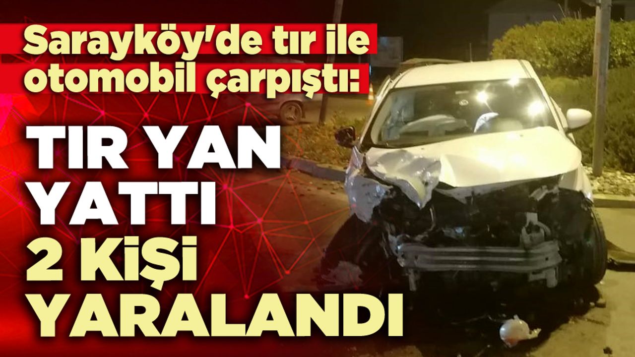 Olay, Sarayköy ilçesindeki Sarayköy Kavşağı'nda akşam saatlerinde gerçekleşti. Seyir halindeki plakası henüz tespit edilemeyen tır, kavşakta bir otomobille çarpıştı. Çarpışmanın şiddetiyle tır yan yatarken, otomobilde de önemli maddi hasar meydana geldi.