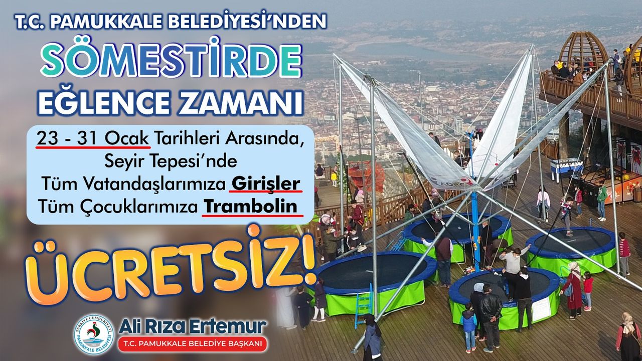 Pamukkale Belediye Başkanı Ali Rıza Ertemur, eğitime ve sosyal yaşama destek vermeyi sürdürdüklerini belirterek şu ifadeleri kullandı: “Yoğun bir eğitim dönemini geride bırakan evlatlarımızın tatil sevincine ortak olmak istedik. Seyir Tepesi, eşsiz manzarası ve sosyal olanaklarıyla şehrimizin önemli nefes alanlarından biri. Bu sömestir tatilinde tüm hemşehrilerimizi, özellikle çocuklarımızı ücretsiz giriş ve trambolin etkinliğimizle Seyir Tepesi’ne davet ediyorum. Amacımız çocuklarımızın yüzünde bir tebessüm oluşturmak ve onlara güzel bir tatil anısı bırakmak.”