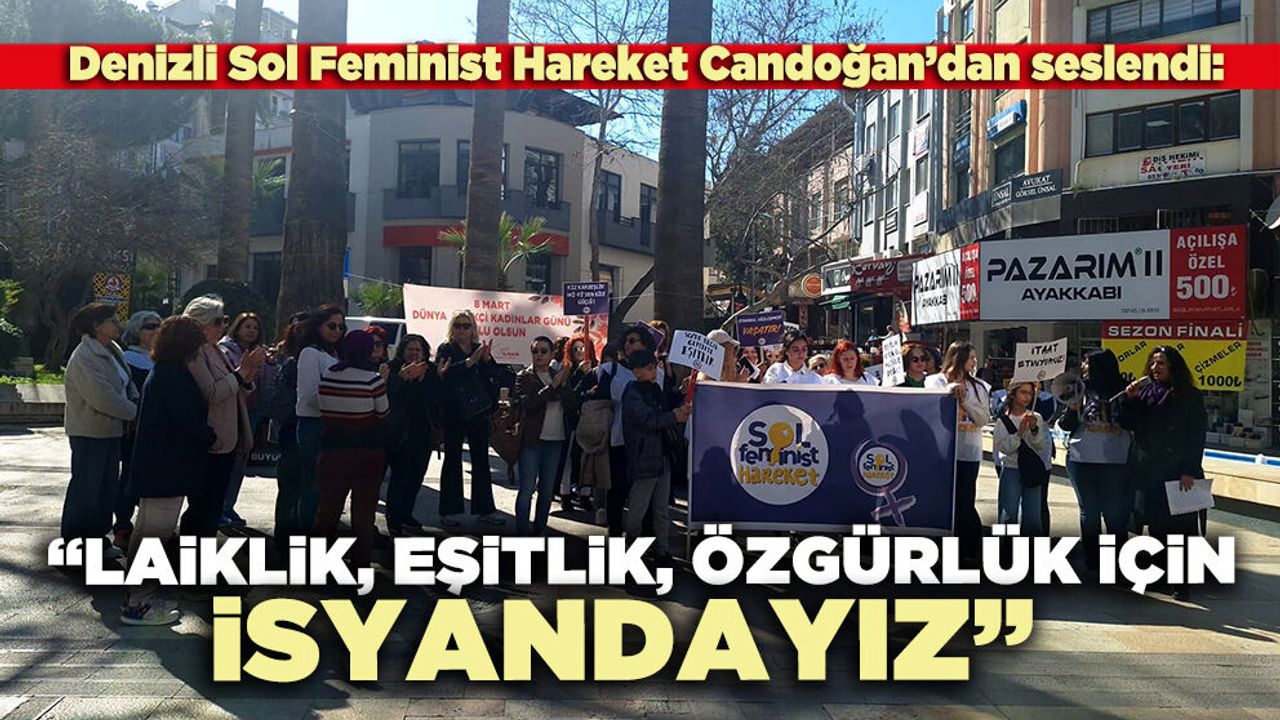 Denizli Sol Feminist Hareket adına Selis Karabacılı tarafından okunan açıklamada, ülkenin tek adam rejimi tarafından gerici bir kuşatma altına alınmaya çalışıldığı belirtildi. “Laikliğin tasfiye edilmesi, hukukun keyfileştirilmesi, tarikat ve cemaatlerin kamusal alanı kuşatması; kadınların ve LGBTİ+’ların haklarının hedef alınması bu politikanın bir parçasıdır” denildi. Siyasal İslamcı düzen hedefiyle toplumun dinsel kurallarla yeniden şekillendirilmek istendiği ifade edildi.