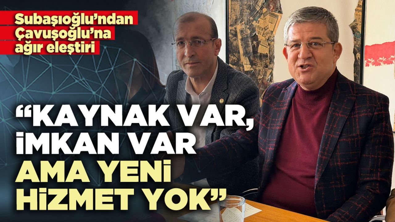 Subaşıoğlu; “Kısacası kaynak var, imkan var ama yeni hizmet yok, icraat yok, vizyon yok” diyerek Çavuşoğlu’nu hem eleştirdi hemde söylemlerine cevap verdi.