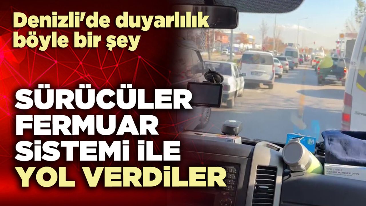 Ambulans içerisinden kaydedilen o anlarda sirenleri açık halde ilerleyen ambulansa trafik ışıklarında bekleyen araçlar birer birer fermuar sistemi ile yol verdiği görülüyor. Denizli İl Sağlık Müdürlüğü sosyal medya hesabından paylaşılan görüntüde, "'Fermuar Sistemi' ile sağ ve sol şeride yanaşarak ambulansa yol veren tüm sürücülerimize gösterdikleri örnek davranış dolayısıyla teşekkür ederiz. Çağrımızı yeniliyoruz. Fermuar sistemi ile yaşama yol ver" ifadeleri yer aldı.