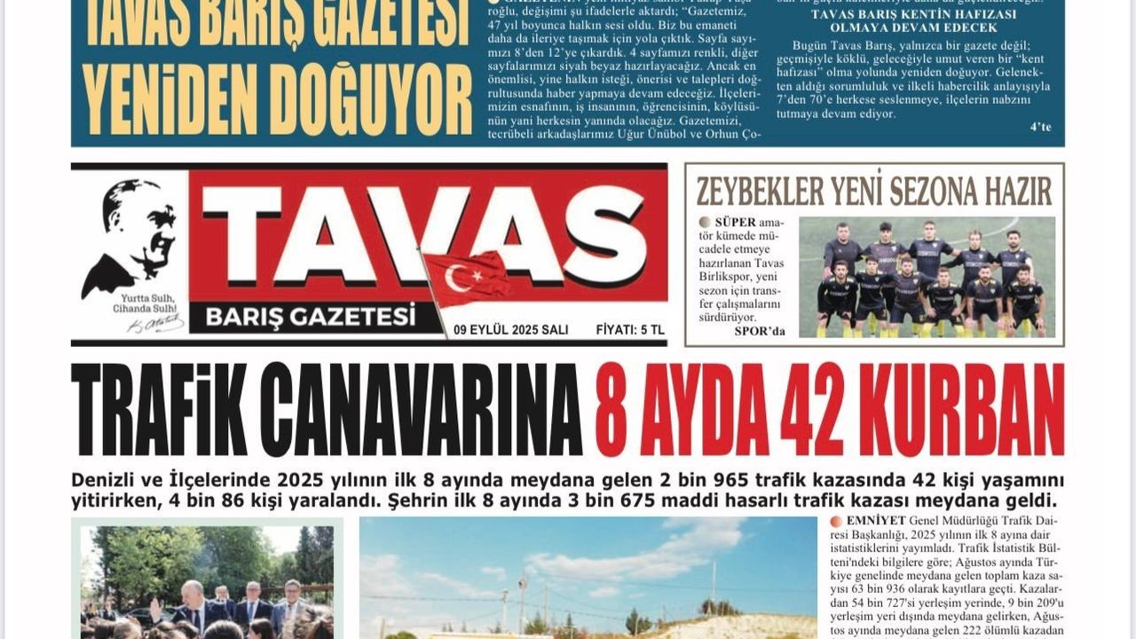 Haftada 2 kez olmak üzere Salı ve Cuma günleri yayımlanacak Tavas Barış Gazetesi artık 12 sayfa olacak. Gazetenin ilk ve son sayfası ile 6 ve 7. Sayfaları renkli, iç sayfalar ise siyah-beyaz hazırlanacak. Bu değişiklikle birlikte gazete, hem görsel anlamda daha zengin bir içerik sunacak hem de okurlarına daha geniş bir haber yelpazesi ulaştıracak.