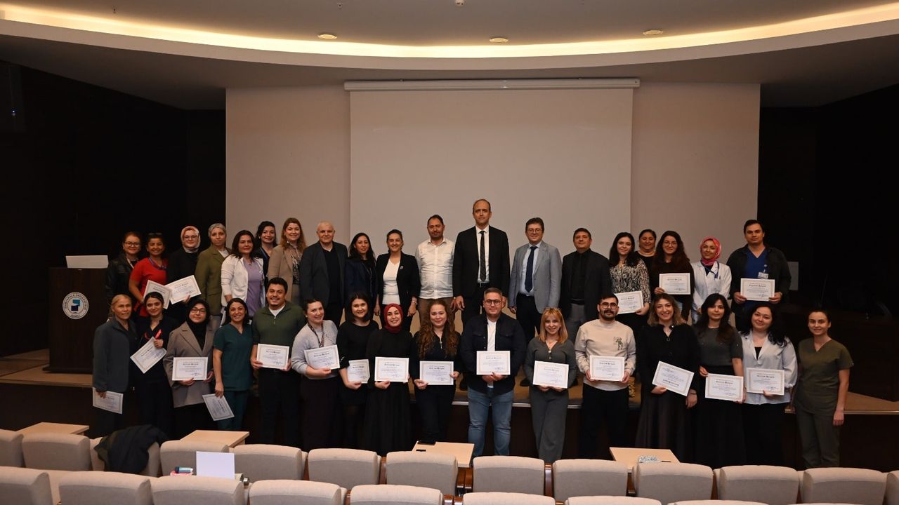 Başhekim Prof. Dr. Hakan Alkan da konuşmasında, yoğun bakım hemşireliğinin yüksek özveri, merhamet ve sürekli gelişim gerektiren bir alan olduğuna dikkat çekti. Yoğun bakım ihtiyacının her geçen gün arttığını belirten Alkan, kaliteli bakım ve başarılı tedavi süreciyle sağlığına kavuşarak taburcu edilen her hastanın sağlık çalışanları için büyük bir gurur kaynağı olduğunu ifade etti. Yoğun bakım hemşirelerinin sağlık sisteminin sürdürülebilirliği açısından kritik bir role sahip olduğunu vurgulayan Alkan, bu alanda yetişmiş hemşirelerin hasta güvenliği ve hizmet kalitesi açısından vazgeçilmez olduğunu belirterek kursiyerleri tebrik etti. Programın sonunda eğitim kadrosunda görev alan eğitimcilere teşekkür belgeleri, 16 hemşireye ise katılım belgeleri protokol üyeleri tarafından takdim edildi. Kapanış programı, toplu fotoğraf çekimiyle sona erdi.