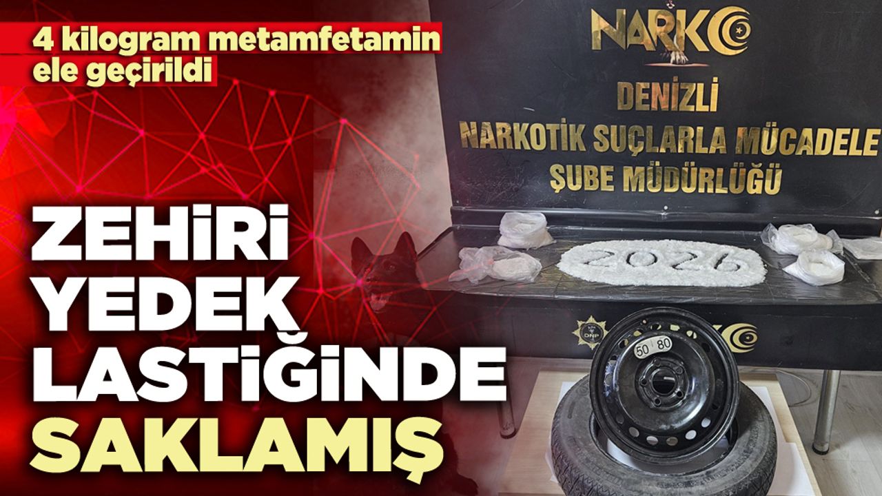 Denizli Emniyet Müdürlüğüne bağlı Narkotik Suçlarla Mücadele Şube Müdürlüğü ekipleri kette zehir tacirliği yapan şüpheli şahıslara yönelik operasyonlarına devam ediyor. Narkotik timleri tarafından 2 şahsın uyuşturucu madde sevkiyatı yapacağı bilgisine ulaşıldı. Zehir tacirlerini bir süreliğine fiziki ve teknik takibe alan narkotik timleri 2 şüpheli şahsında araçta olduğu sırada operasyon düzenledi. Şüpheliler kıskıvrak yakalanırken, araçta yapılan aramalarda yedek lastik içerisine gizlenmiş 5 parça halinde 4 kilogram metamfetamin ele geçirildi. Emniyetteki işlemlerinin ardından 2 şüpheli çıkarıldıkları mahkemece tutuklandı.