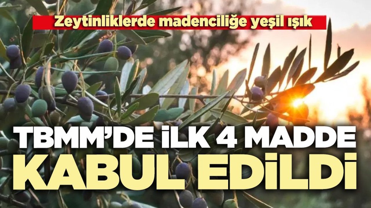TBMM Genel Kurulu’nda, zeytinlik alanların madencilik faaliyetlerine açılmasını da içeren “Bazı Kanunlarda Değişiklik Yapılmasına Dair Kanun Teklifi”nin ilk 4 maddesi onaylandı. Kamuoyunda “Süper İzin” olarak anılan teklifin görüşmeleri, 18 Temmuz 2025 Cuma günü saat 14.00’te devam edecek.